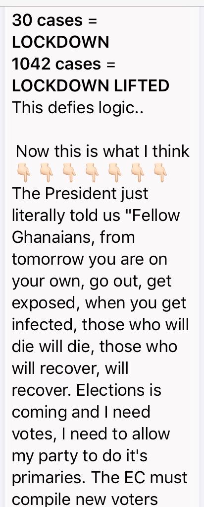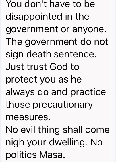 Kindly wear me because you’re all potential COVID-19 until tested to know your status. Again, wear me because you or me or we may be asymptomatic ( carriers) who can infect others unknowingly. You are wearing me not to feel comfort but there is a need to do so for your own safety, my safety, our safety and the community’s safety .