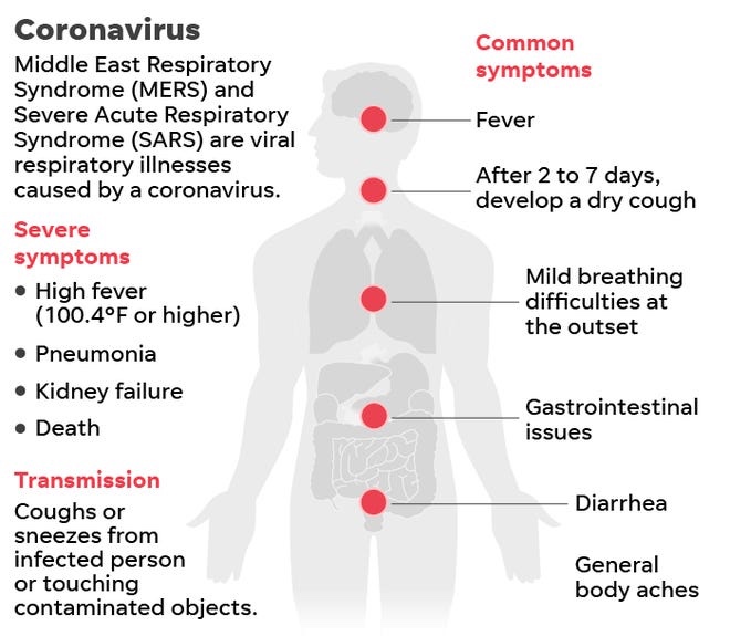 Both the MERS-COv and SARS-COv cause severe signs and symptoms including the 2019-nCOv such as fever,runny nose, cough, shortness of breath, chills, body aches then in some cases, bronchitis or pneumonia. People with weak immune system are vulnerable to the disease (CDC, WHO, webMed). One can get the disease through contact with infected person through sneezing or coughing, touching or shaking infected surfaces or hands but faecal contamination is very rare (WebMed.com).